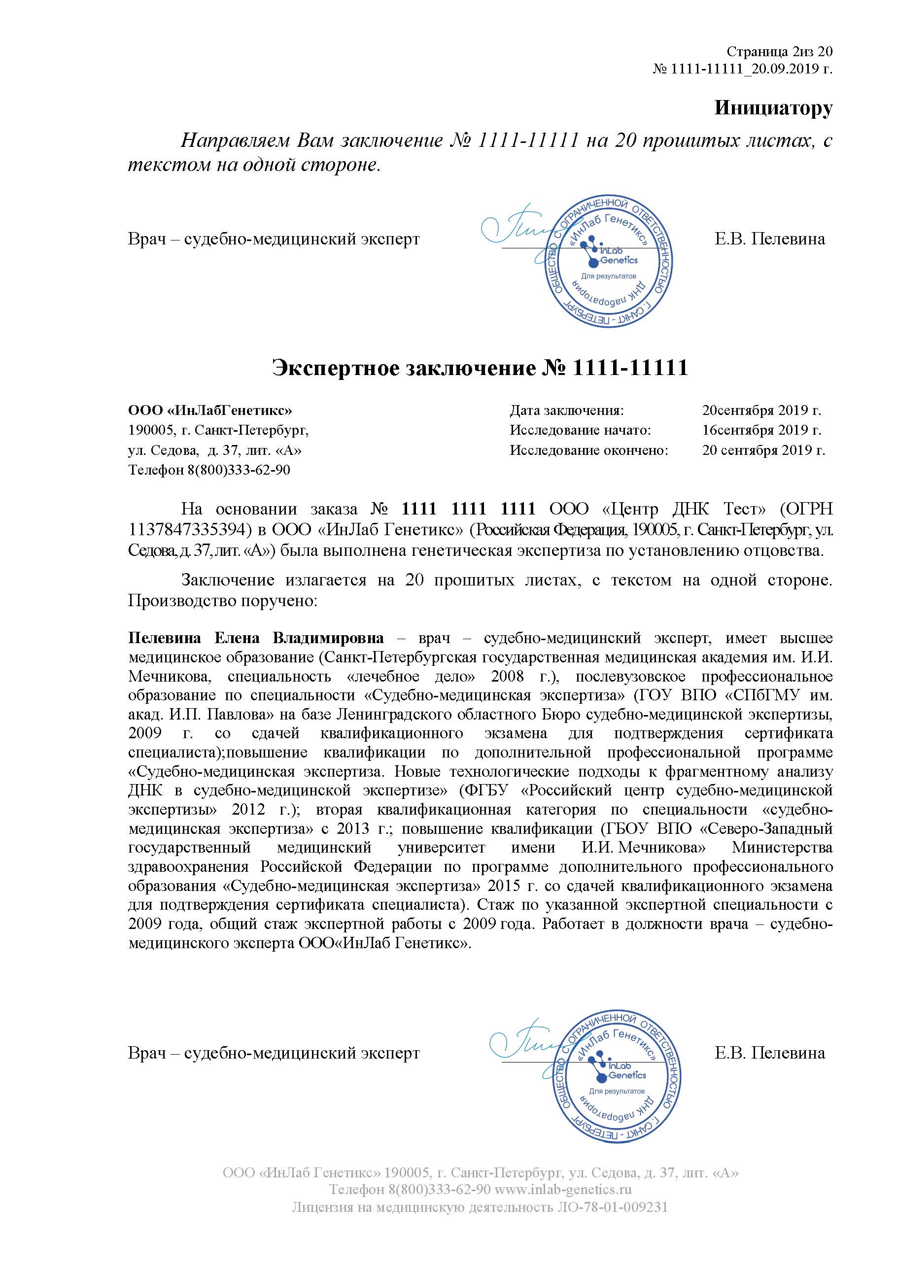 ДНК-лаборатория имеет полную аккредитацию и сертификацию. Наши заключения являются полными и развернутыми.